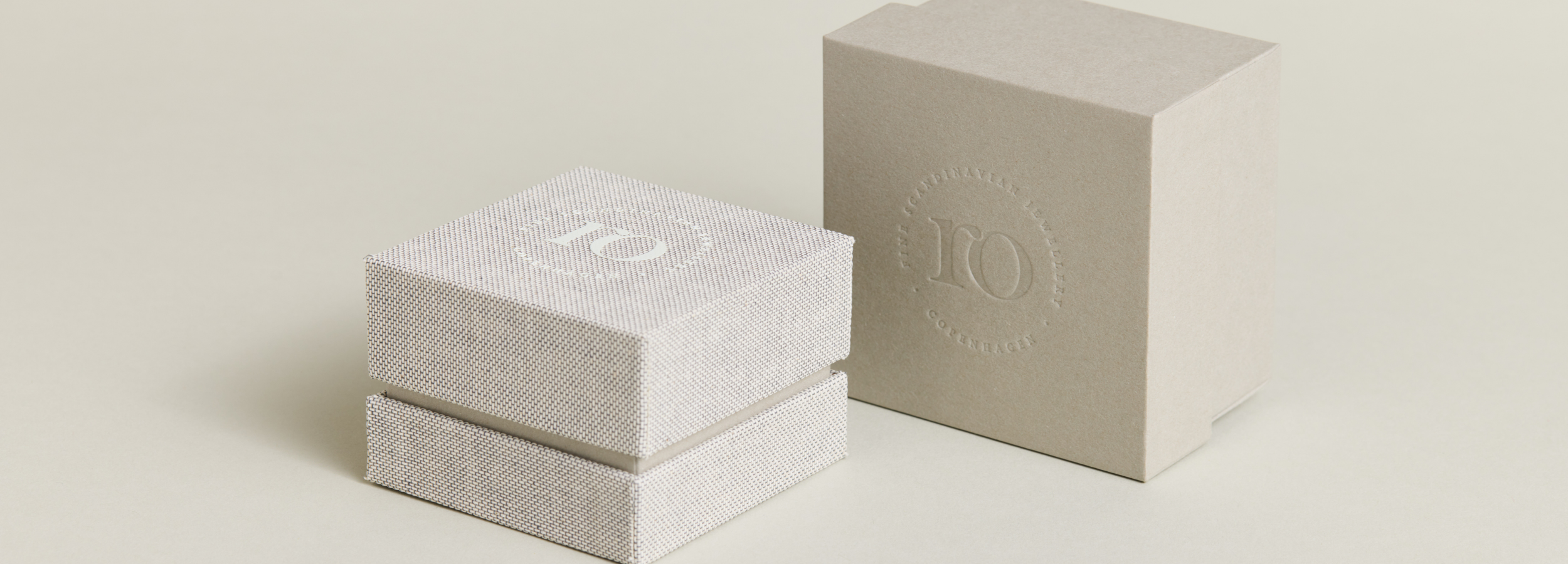 - Smykkeæske: Vi håber, du vil beholde smykkeæsken til opbevaring af dit nye smykke. Æsken er fremstillet af FSC-certificeret pap og beklædt med HALFLINNEN FSC-papir. Linen kræver færre pesticider og mindre vand end bomuld. HALFLINNEN er både vegan og REACH-certificeret. Æskens indlæg er beklædt med økologisk bomuld. Skulle du have brug for at smide smykkeæsken ud, skal dette gøres som restaffald.