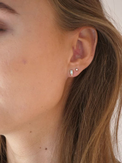 Smuk lille ørestik i 18 karat hvidguld sat med ædelsten og diamant. En iskold skønhed fra Nord kollektionen. Brug den alene for et disket udtryk, eller sæt den sammen med andre øreringe i samme stil.