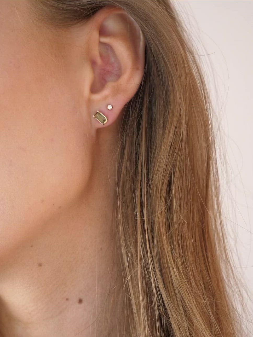 Ørestikken er fremstillet i 18kt rødguld sat med en lille Ro signatur-diamant. 1 brillant 0,003ct TW.VS & 0,40ct røgkvarts